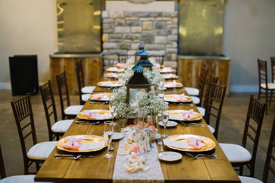 These vintage style farmhouse tables are built custom for Metro Cuisine. Each table seats 8 to 10 guests.